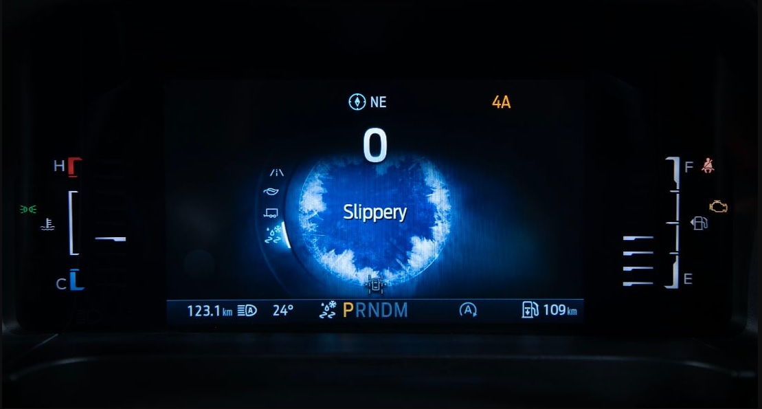 Slippery – Chế độ vận hành trên bề mặt trơn trượtKhi di chuyển trên địa hình trơn trượt, động cơ và hộp số được điều chỉnh để giảm vòng quay của bánh xe kết hợp với hệ thống Kiểm soát Cân bằng của Ford (FSC – Ford Stability Control) tùy chỉnh độc đáo, giúp kiểm soát độ trượt của bánh xe hiệu quả hơn. |