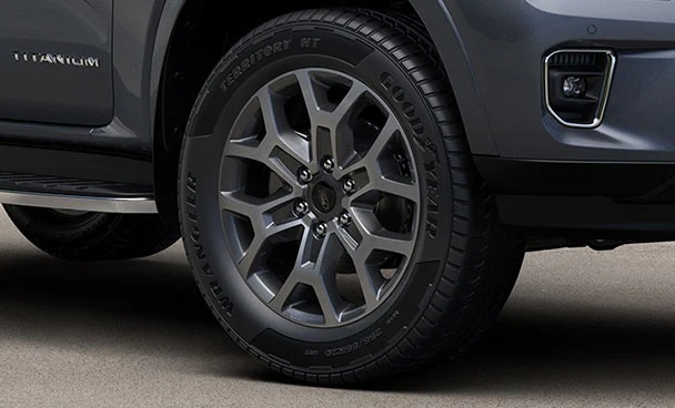 Mâm Xe Hợp Kim với thiết kế hiện đạiMâm xe hợp kim lớn 20 inch đa chấu đươc hoàn thiện tỉ mỉ, tôn thêm vẻ bề thế, cơ bắp và linh hoạt cho Ford Everest Titanium+ 4×4 AT. Các điểm nhấn mạ chrôm trên tấm chắn bùn giúp gắn kết bánh xe với phần thân trên. |
